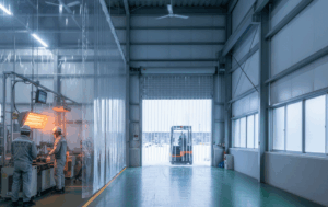 •ビニールシート間仕切り: 軽量で設置が容易なビニールシートで、作業空間を囲い、暖めた空気をそのエリア内に閉じ込めます。暖房効率が格段に向上し、全体空調よりも大幅にコストを抑えられます。